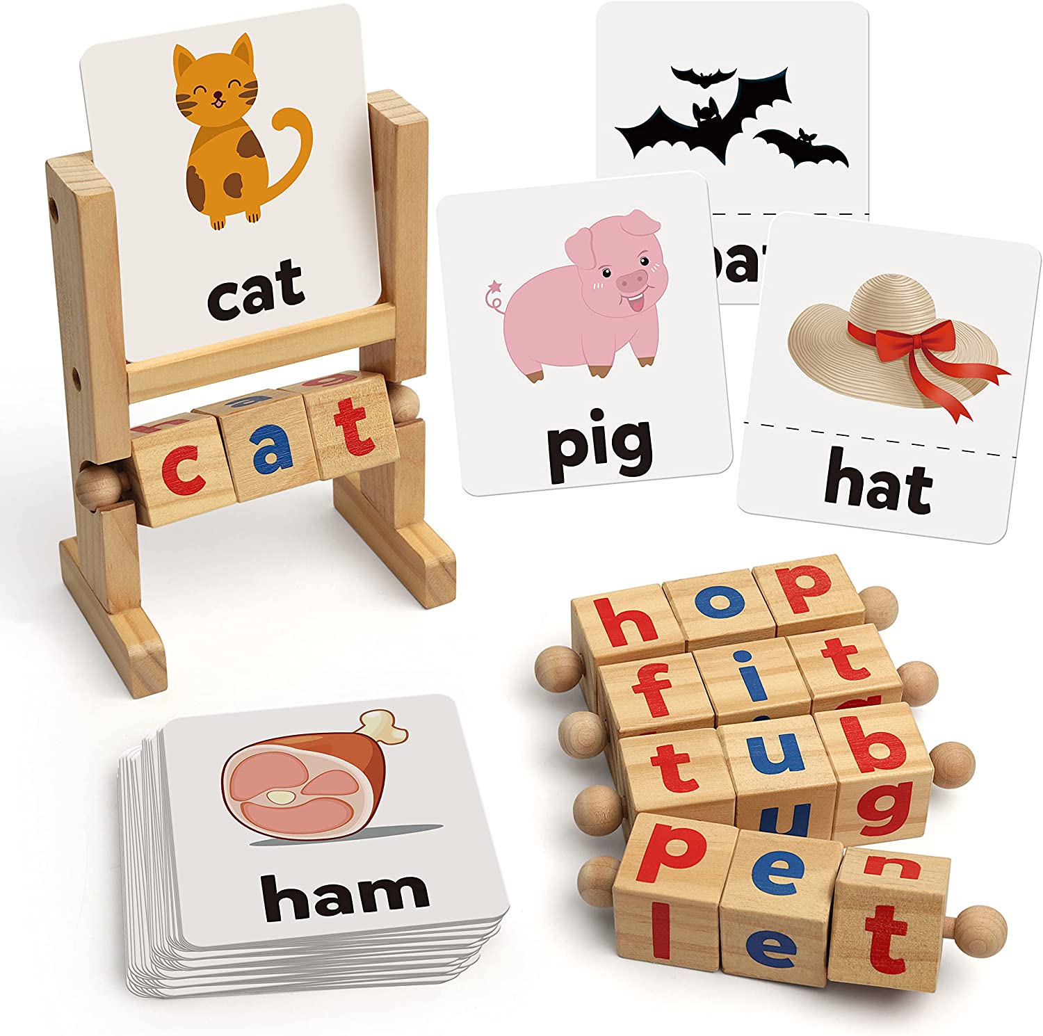 Wooden Reading Blocks Short Vowel Rods Spelling Games, Flash Cards Turning Rotating Letter Puzzle